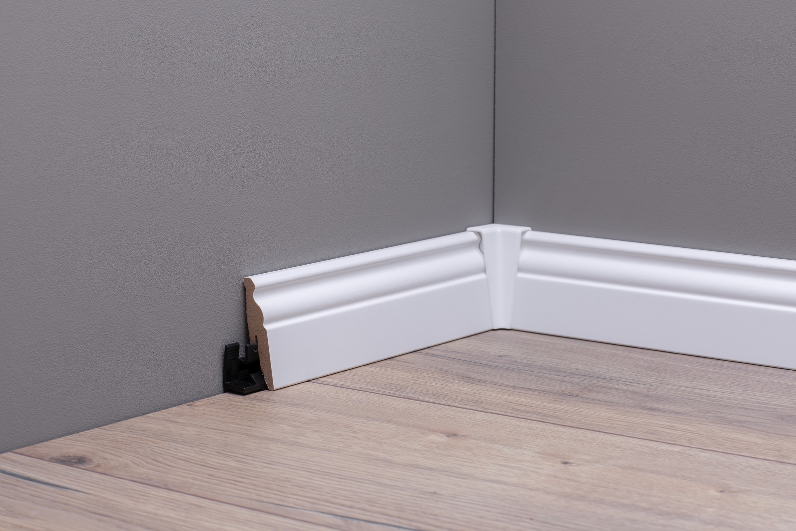 Durch das einfache ClipSystem lassen sich die Sockelleisten problemlos an der Wand befestigen.
