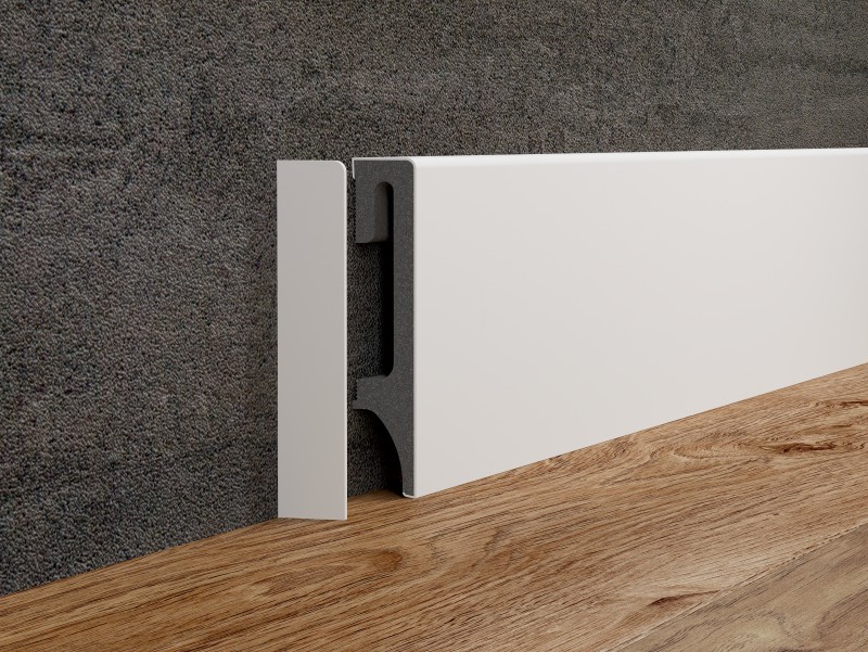 - Kunststoffsockelleiste aus Polymermaterialien in Weiß