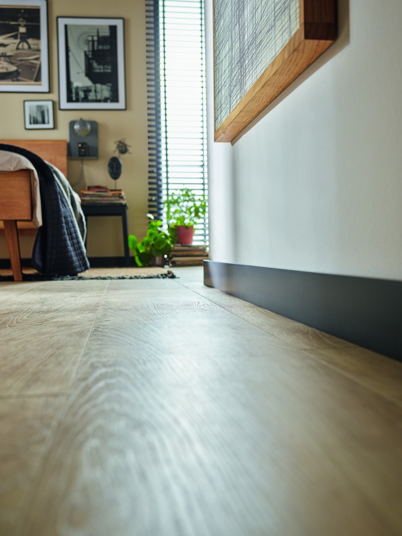 - Kunststoffsockelleiste aus Polymermaterialien in Grau/Anthrazit