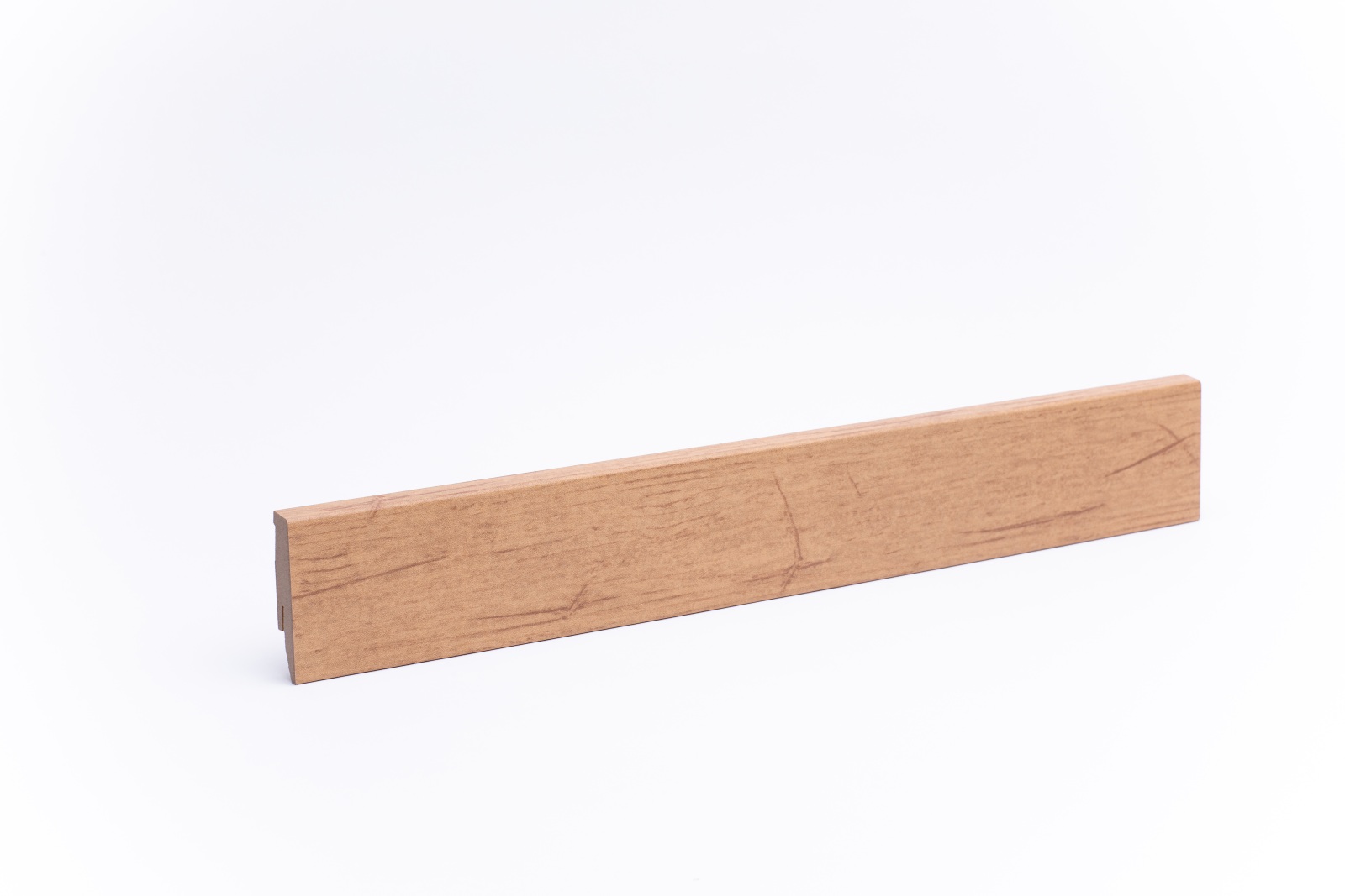 Die Fußleiste hat einen MDF-Kern (MDF-mitteldichte Holzfaserplatte). Dieser gibt der Fußleiste ausreichend Flexibilität sowie Stabilität.