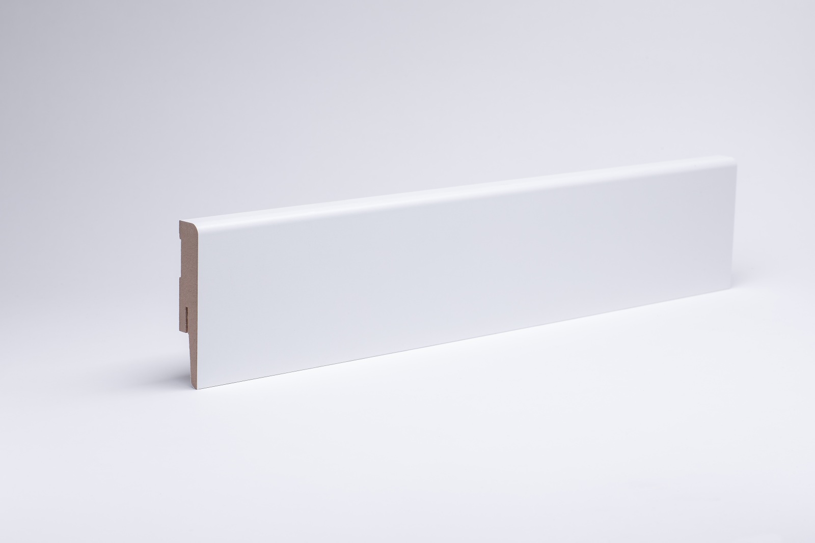 Die Fußleiste hat einen MDF-Kern (MDF-mitteldichte Holzfaserplatte). Dieser gibt der Fußleiste ausreichend Flexibilität sowie Stabilität.
