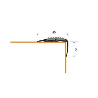 Treppenstufenprofil 40 x 20 x 2.700 mm aus Aluminium mit Gummi-Einlage in grau. Die gerillte Gummi-Einsätze dienen als Rutschschutz und erhöhen die Sicherheit auf der Stufenkante.