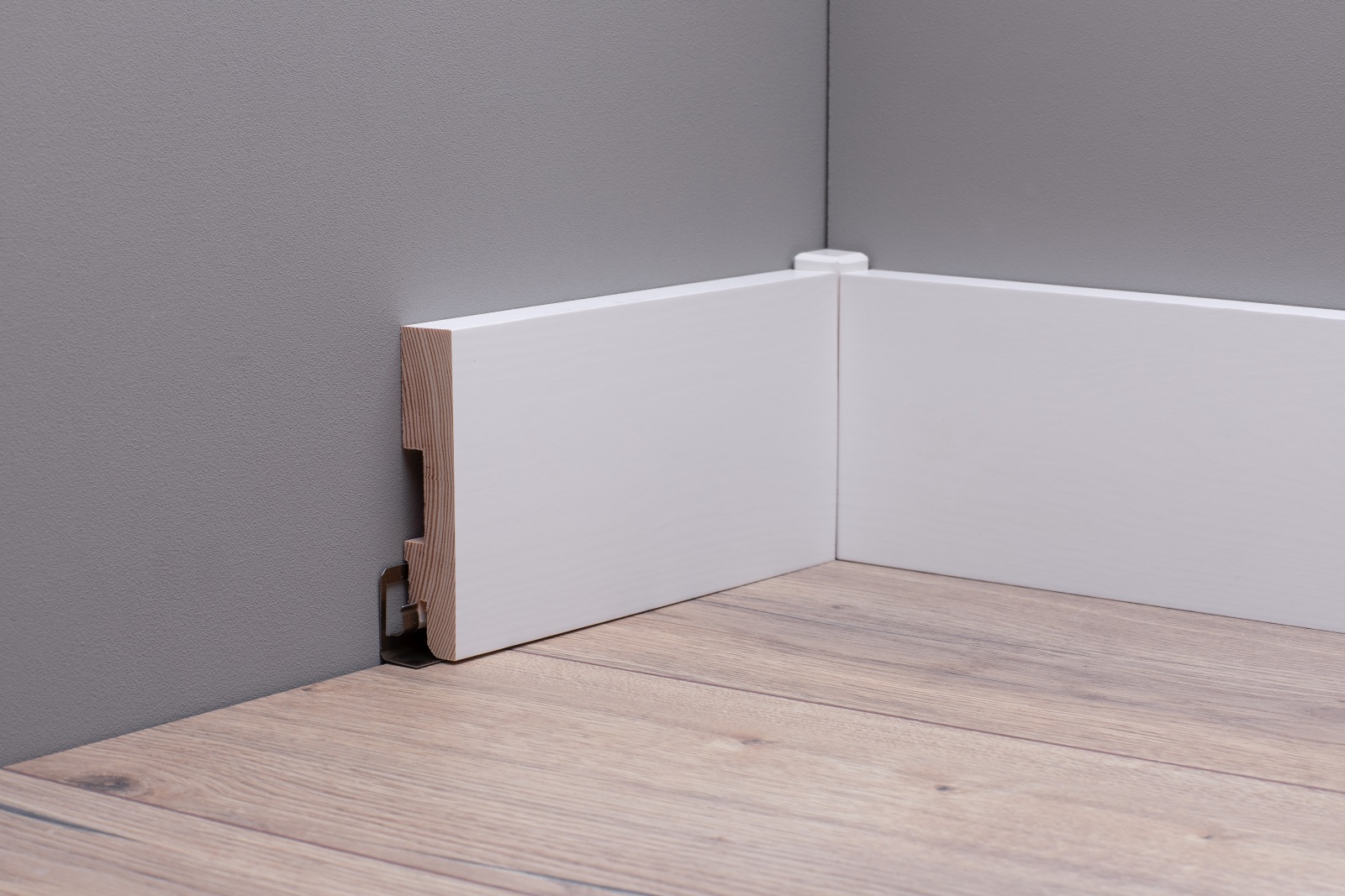 Die Sockelleisten sind aus hochwertigem Kiefern-Massivholz gefertigt und dadurch robust und langlebig. Die Oberfläche ist im modernen Farbton RAL9016 deckend weiß lackiert. Die hochwertige Lackierung schützt das Holz zudem vor äußeren Einflüssen und erzeugt eine wundervolle Optik mit einzigartiger Holzmaserung.