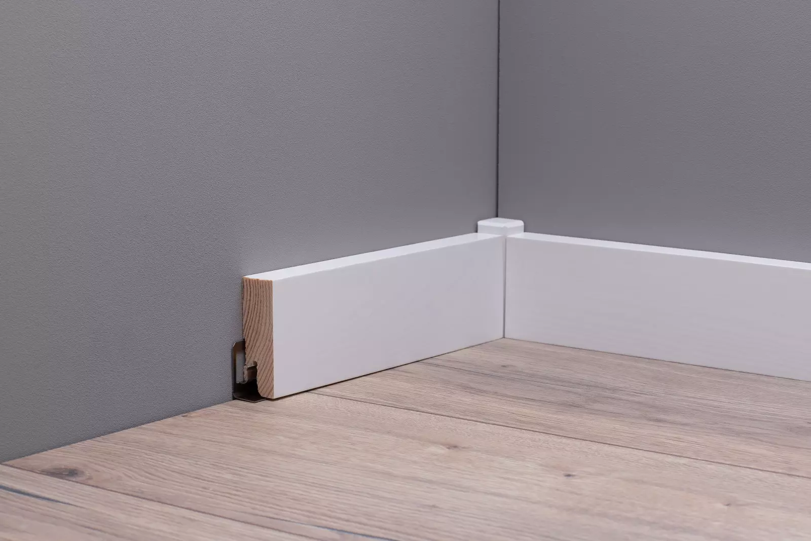 Durch das praktische ClipSystem lassen sich die Sockelleisten schnell und einfach an der Wand montieren.