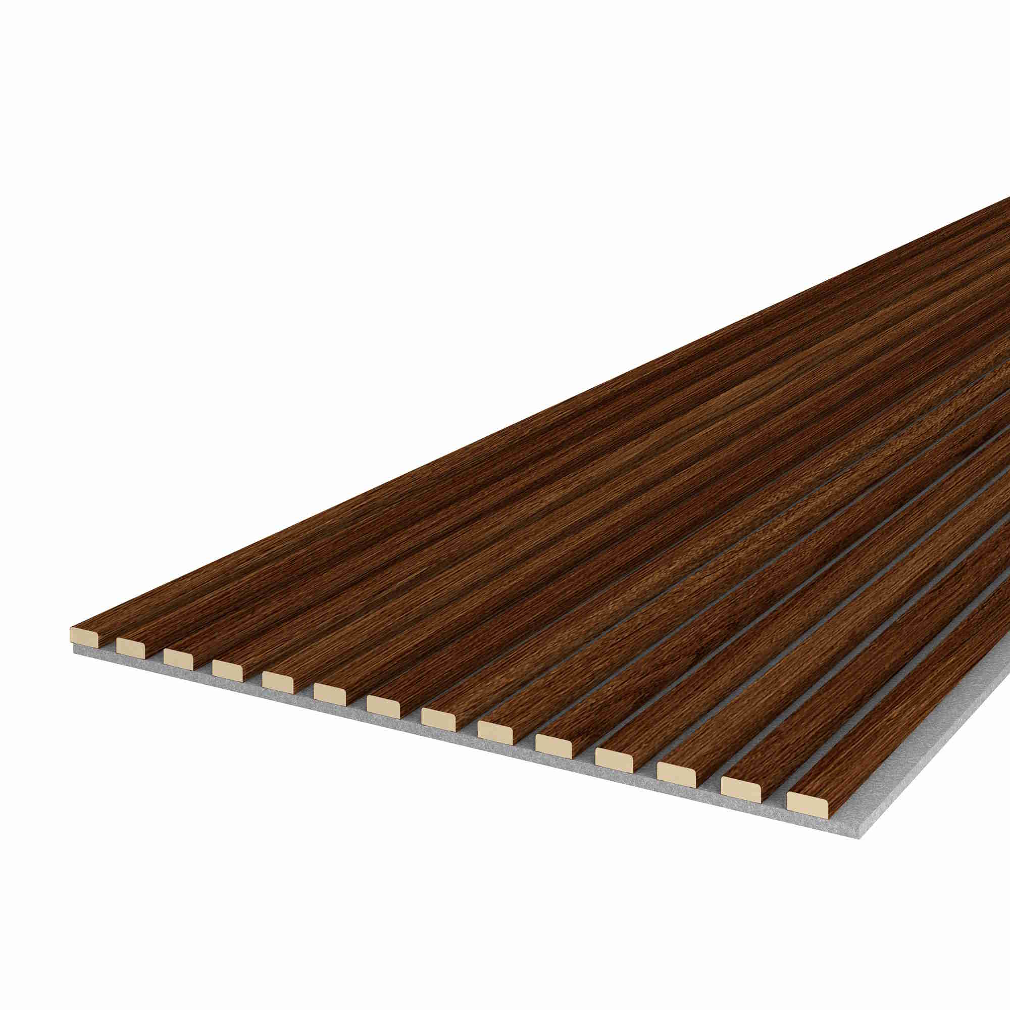 Lamellenverkleidung - Wandverkleidung - Akustikpaneel 600 x 2400 mm Eiche dunkel - Akustikfilz Grau