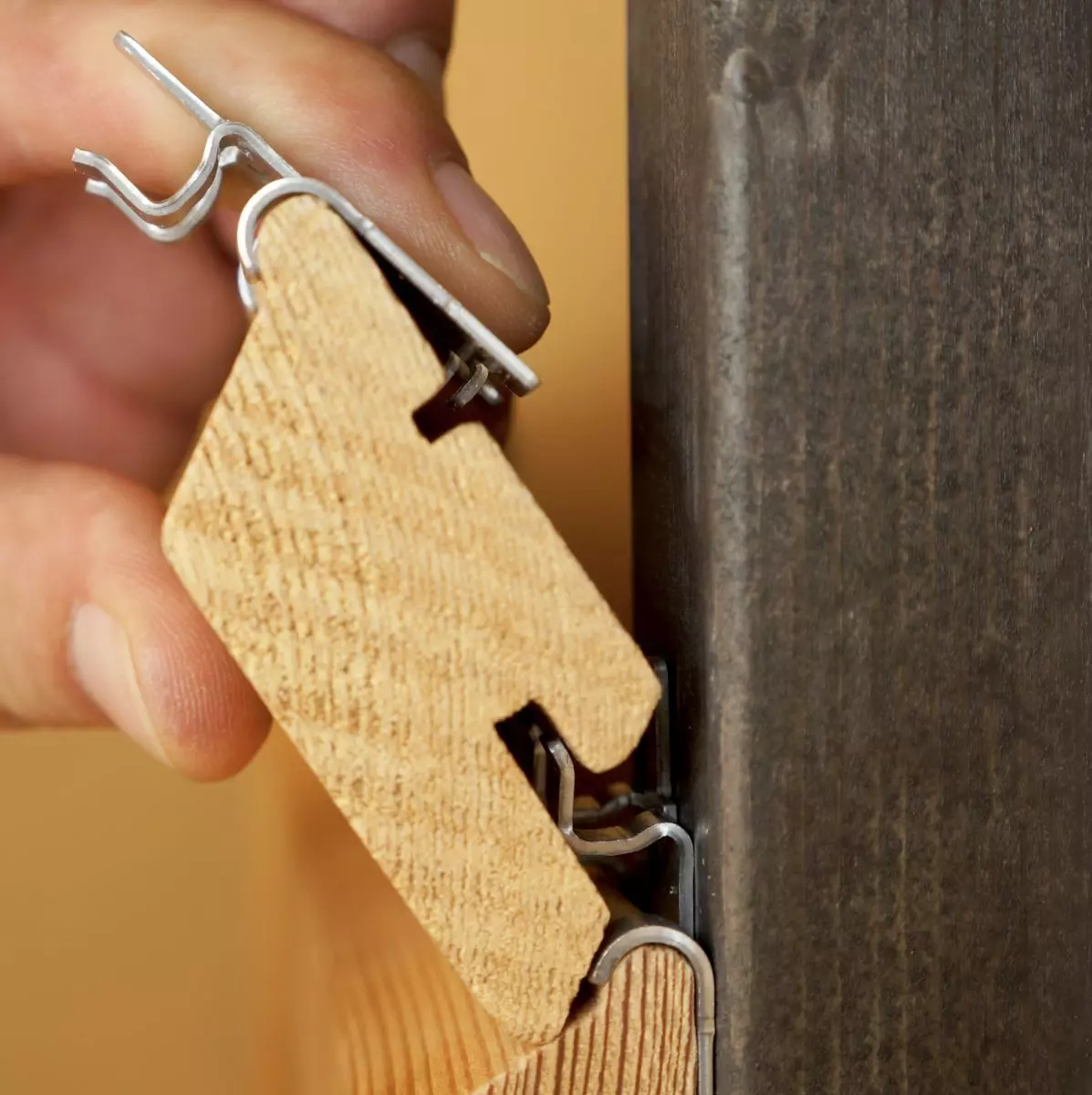 Die TIGA-Fassadenverbinder ermöglichen Ihnen, Ihre Rhombusleisten an der Außenfassade verdeckt zu befestigen. Es ist also nicht erforderlich, sie mit sichtbaren Schrauben an der Unterkonstruktion festzuschrauben. Dies gelingt über spezielle Klammern, die Sie mit der mitgelieferten Schraube an der Unterkonstruktion anbringen.