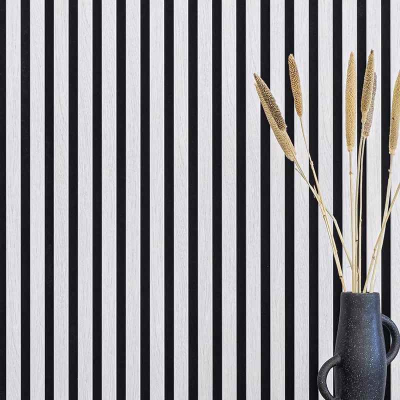 Lamellenleisten sind das Gegenstück zu unseren vorgefertigten Akustikpaneelen, die Sie als komplette Einheit direkt in Ihr Wohnzimmer oder Ihre Küche integrieren können. Bei Wandlamellen handelt es sich um die einzelnen Leisten, die normalerweise auf Wandpaneelen oder individuell zu einer Lamellenwand montiert werden. Einzeln verwendet haben einen wesentlichen Vorteil: Sie sind in der optischen Gestaltung des Raums völlig frei und nicht an ein bestimmtes Maß gebunden. So passen Sie Ihre Lamellenleisten im Wohnzimmer perfekt an die vorhandenen Möbel und Farben an und unterstreichen den Charakter der Einrichtung.