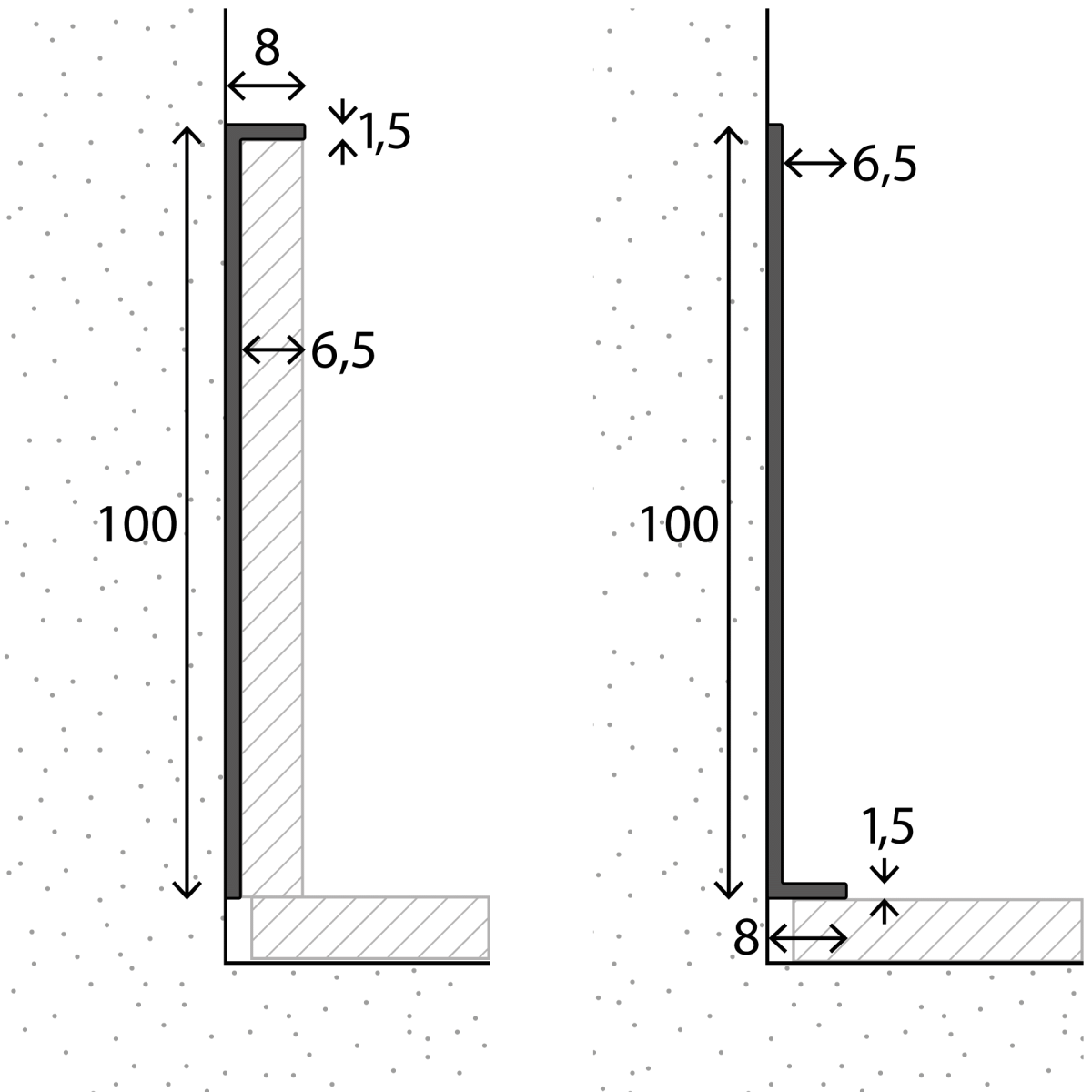Die Leiste liegt dicht an der Wand an und überzeugt durch eine makellose Aluminium-Oberfläche. Mit dem kurzen Schenkel nach oben montiert werden aus ihnen dezente Einklebeleisten für Bodenbeläge mit Stärken bis 6,5 mm. So können aus dem verarbeiteten Bodenbelag Sockelleisten im identischen Dekor gestaltet und überschüssiges Material effizient genutzt werden.